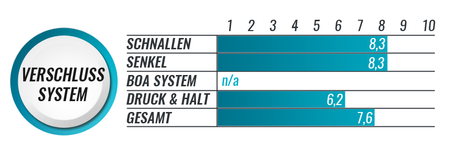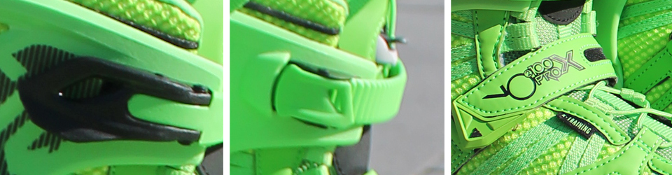 Der K2 Skate VO2 100 X Pro ist mit einem guten Verschlusssystem versehen. Speziell die Schnellschnürung der Senkel ist dabei auffällig. Der Senkel ist durch einen Griff miteinander verbunden, durch einen Zug an dem Griff ist der Skate sofort geschnürt. Ein Fixierungsstopper hält die Senkel dann in Position. Durch dieses System ist eine individuelle Schnürung jedoch nicht möglich. Die Schnallen und Klettverschlüsse des Skates sind Wertig und geben zusätzliche Stabilität.