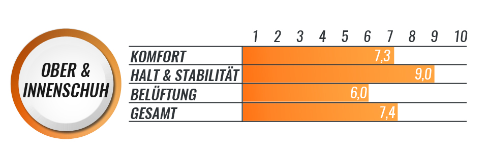 Der Oberschuh des Powerslide Marathon ist bereits sehr sportlich und hart. Der Innenschuh ist hingegen noch ausreichend gepolstert. Im Test konnten somit beide Kriterien Komfort, sowie Halt & Stabilität ordentlich Punkten. In unserem Inlineskate Test ist bei dem Powerslide Marathon besonders der bewegliche Cuff aufgefallen. Somit lässt der Schuh noch genügend Bewegungsfreiheit um auch in der Skatehocke zu Skaten.