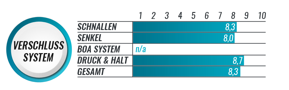 Der Powerslide Marathon 110mm schlägt eine Brücke zwischen Fitnessskating und Wettkampf-/Rennskaten. Powerslide selbst bezeichnet dieses Profil als Powerskaten. Dem entsprechend ist der Skate auch ausgestattet. Das Verschlusssystem bietet eine Doppelschnalle, eine am Schaft und eine über dem Spann. Somit lässt sich viel Druck speziell im Fersenbereich erzielen. Ein Schlupfen der Ferse ist somit nahezu ausgeschlossen. Die gewachsten Senkel des Schuhs erlauben eine individuelle Schnürung und halten sehr fest. Das spiegelt sich auch in unserem Test wieder in dem der Powerslide Marathon in dem Unterkriterium Druck & Halt einen sehr guten Wert von 8,7 erzielt.