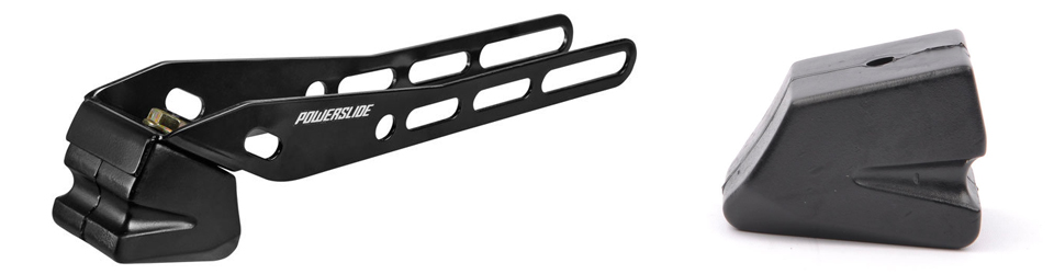 Der Powerslide Marathon kann optional mit der Powerslide Road Hog Bremse ausgestattet werden. Die Road Hog ist stabil gefertigt und passt zu allen Skates mit einer Rollengröße maximal von 110mm. Da die Bremse nicht zusammen mit dem Skate konstruiert wurde, ist der Bremswinkel und somit die Wirkung nicht 100%ig. Speziell bei kleineren Rollengrößen als 110mm werden der überstehende Bremsarm und der Winkel immer länger. Im Test des Powerslide Marathon mit seinen 110mm Rollen war die Bremswirkung nach einer kurzen Eingewöhnung aber durchaus akzeptabel.