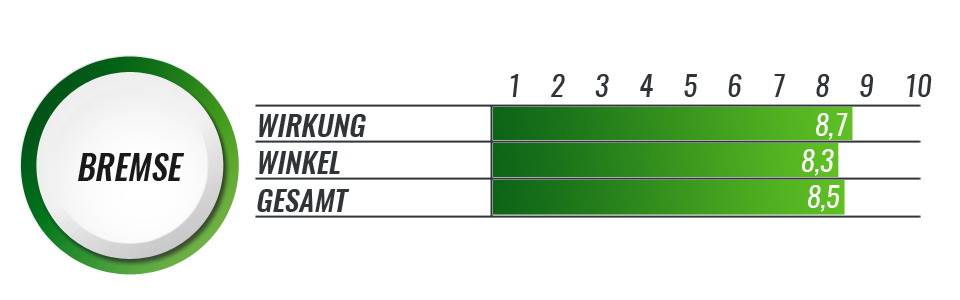 Im Lieferumfang des Rollerblade Tempest 110 c ist eine Bremse enthalten. Diese kann bei Bedarf einfach montiert werden. Eine entsprechende längere Achsen zur Montage ist natürlich auch im Umfang enthalten. Die Wirkung der Bremse ist sehr gut, der Stopper hat gute Verschleisswerte, lediglich der Winkel der Bremse ist für kleinere Personen mit einer Gewöhnungsphase verbunden. Dies hängt aber sicherlich auch mit der Schienenlänge von 13,2“ zusammen.