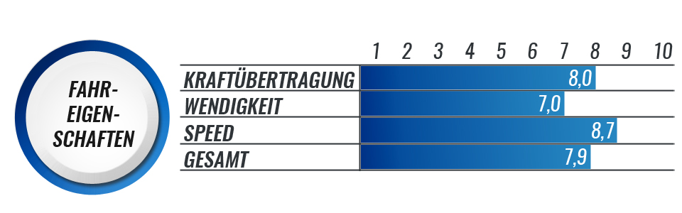 In dem Kriterium Fahreigenschaften fällt die fehlende Wendigkeit auf. Der Rollerblade Tempest ist für die Langstrecke ausgelegt und kein wendiger Stadtcruiser. Die Kraftübertragung des Schuhs ist sehr gut, dabei kann vor allem die Karbonhalbschale punkten.