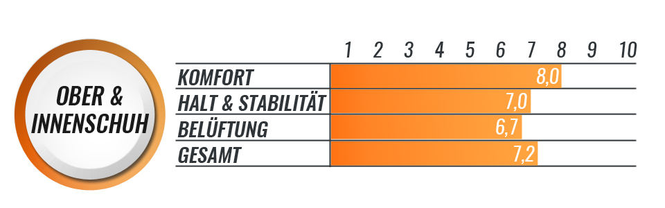 Der Rollerblade Tempest 110 c schneidet in unserem Skatetest insgesamt mit der Note 8,1 ab. Dies ist ein sehr guter Wert und dabei ist zu beachten, dass der Rollerblade Tempest ein Schuh ist, der sowohl die langen Touren, als auch einen Wettkampf erlaubt. Ein absoluter Allrounder für den sportlichen ambitionierten Fitnessskater.