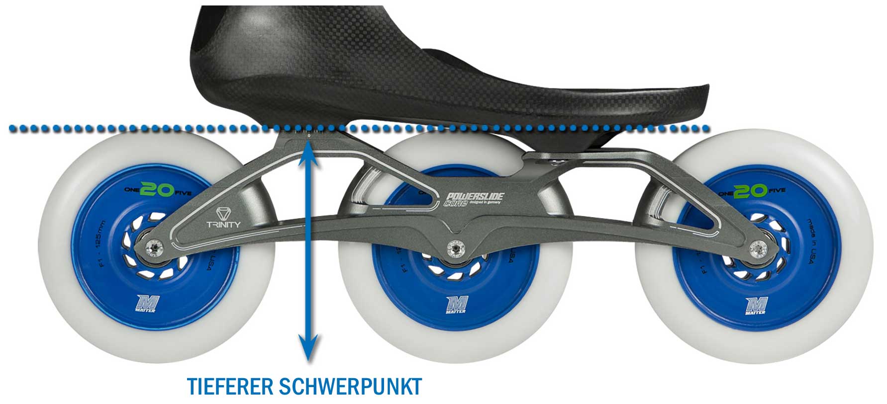 Inlineskates mit Trinity-Montage bieten einen tieferen Schwerpunkt, mehr Stabilität und mehr Sicherheit.