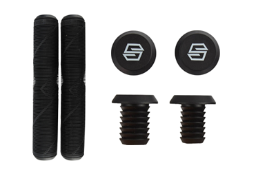 Hier gibt es nicht viel zu sagen. Die Griffe befinden sich an den Lenkerenden und ermöglichen einen sicheren Halt auf dem Scooter. Es gibt sie in unterschiedlichsten Farben und Designs. BAR-ENDS sind kleinen Plastikkappen, die in die Lenkerenden eingedrückt werden, haben schon so manche schwere Verletzung verhindert. Dank ihnen kann sich das Rohr nicht zu einer gefährlichen Stanze verwandeln, wenn man doch einmal auf das Lenkerende stürzen solle.