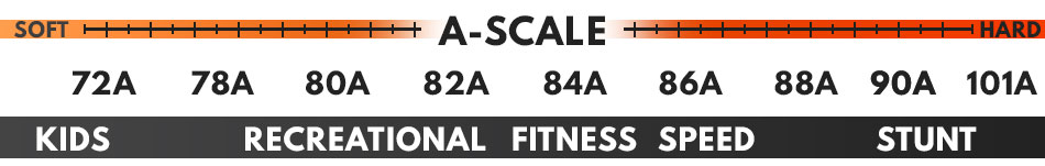 In addition to the diameter, the hardness of the wheels is another decisive factor for the riding characteristics of an inline skate. The hardness of the wheels is generally indicated with the help of the a-scale. The higher the number before the "a", the harder the wheel. A wheel with a 86a is harder than a wheel with 80a hardness.