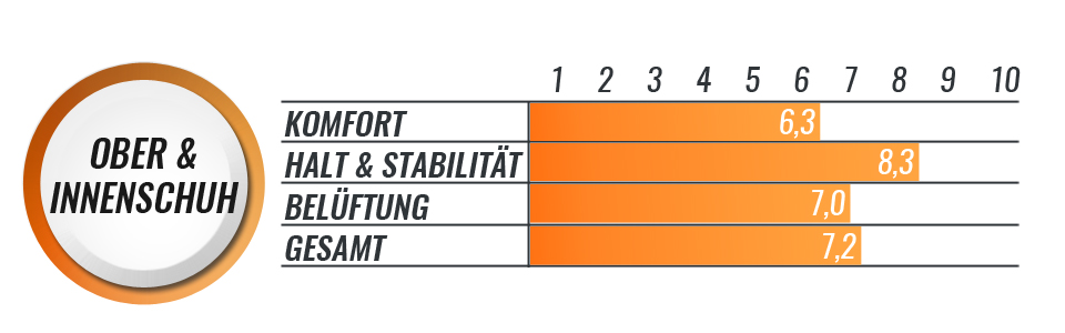 Auffällig in unserem Inlineskatetest ist, dass der Powerslide Imperial Megacruiser weniger Komfort bietet als angenommen. Die liegt wohl an der zunächst gewöhnungsbedürftigen Passform. Ein großes Plus des Schuhs ist aber, die Verformbarkeit. Durch Wärme lässt sich der Innenschuh individuell dem Fuß anpassen. Kleine Besonderheiten des Fußes können so berücksichtig werden. Eine Anpassung des Innenschuhs ist absolut ratsam und sollte auch nach Möglichkeit bei der Anprobe gemacht werden. Die Innenschuhe lassen sich immer wieder aufs Neue anpassen. Die Schale des Megacruiser hat seitlich und im Fersenbereich Ausschnitte und sorgt somit für eine akzeptable Belüftung.