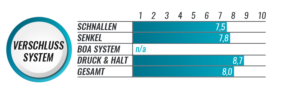 Das Verschlusssystem des Powerslide Imperial Megacruiser bietet mit seinen zwei Schnalle und den breiten Senkel viele Möglichkeiten um den Skate seinen Bedürfnissen anzupassen. Die erste obere Schnalle sorgt für Halt im Schaft- und Wadenbereich. Die Schnalle über den Spann sorgt dafür, dass die Ferse festen Halt hat. Am meisten Druck bekommt der Skate aber durch die breiten Senkel. Der Druck & Halt des Systems wurde in unsrem Inlineskate Test über durchschnittlich gut bewertet.