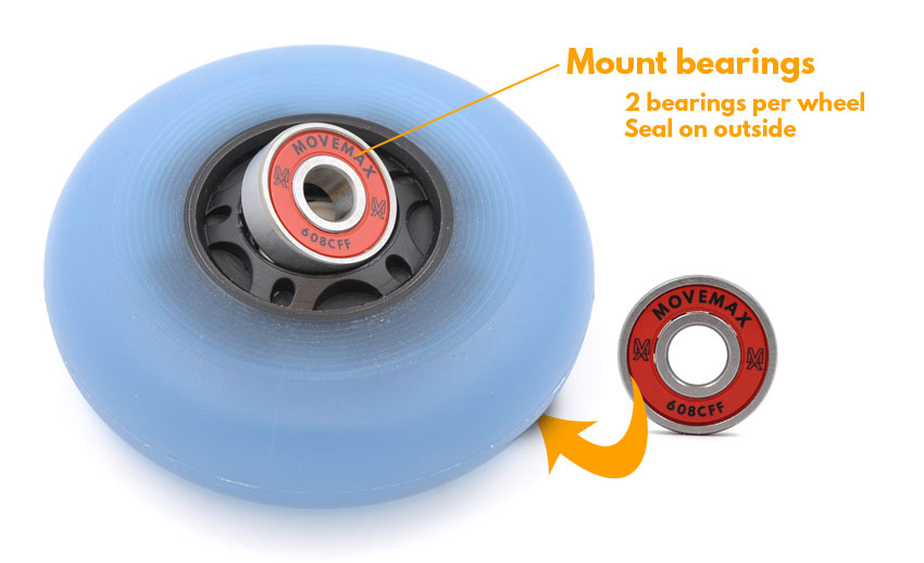 Which ball bearings fit the light wheels? In general, all 608 standard ball bearings fit the castors. 688 micro bearings can also be used. In this case, however, the appropriate adapters must be used.
