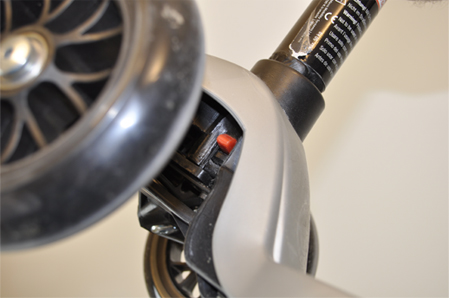 Es besteht daher die Gefahr, dass sich die Lenkstange unbeabsichtigt löst, sofern sie nicht tief genug in die entsprechende Aufnahme eingeschoben wurde oder die Sicherungsnase nicht richtig ausfährt, weil sie zum Beispiel verschmutzt ist. Diese Gefahr ist übrigens beim Maxi Micro und beim Hodura besonders groß, weil die Sicherungsnase im „schmutzintensiven“ Bereich unterhalb des Decks angebracht ist.