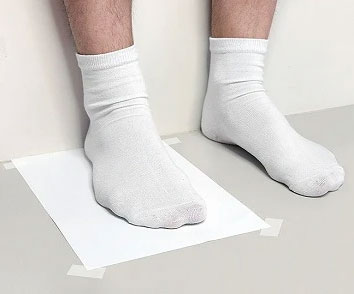 Place your foot with the heel on the sheet of paper in front of a straight wall